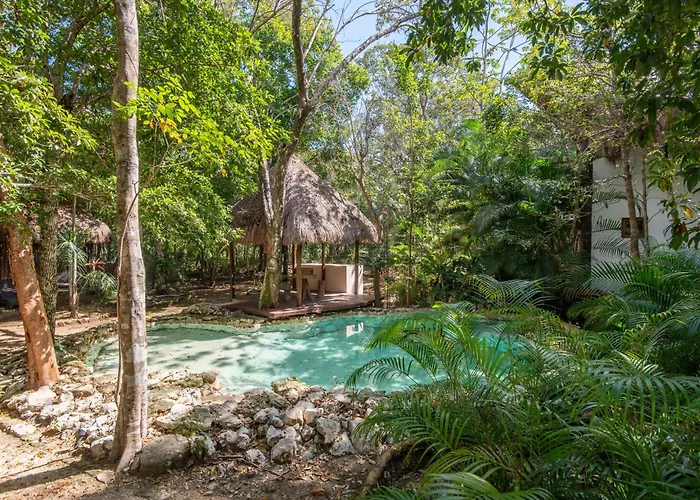 Il Private Jungle Villa With Full Kitchen & Pool Access Tulum comprende una terrazza solarium e si trova a circa 700 metri dal Cenote Xunaan-Ha. Gli ospiti possono rilassarsi con una jacuzzi.